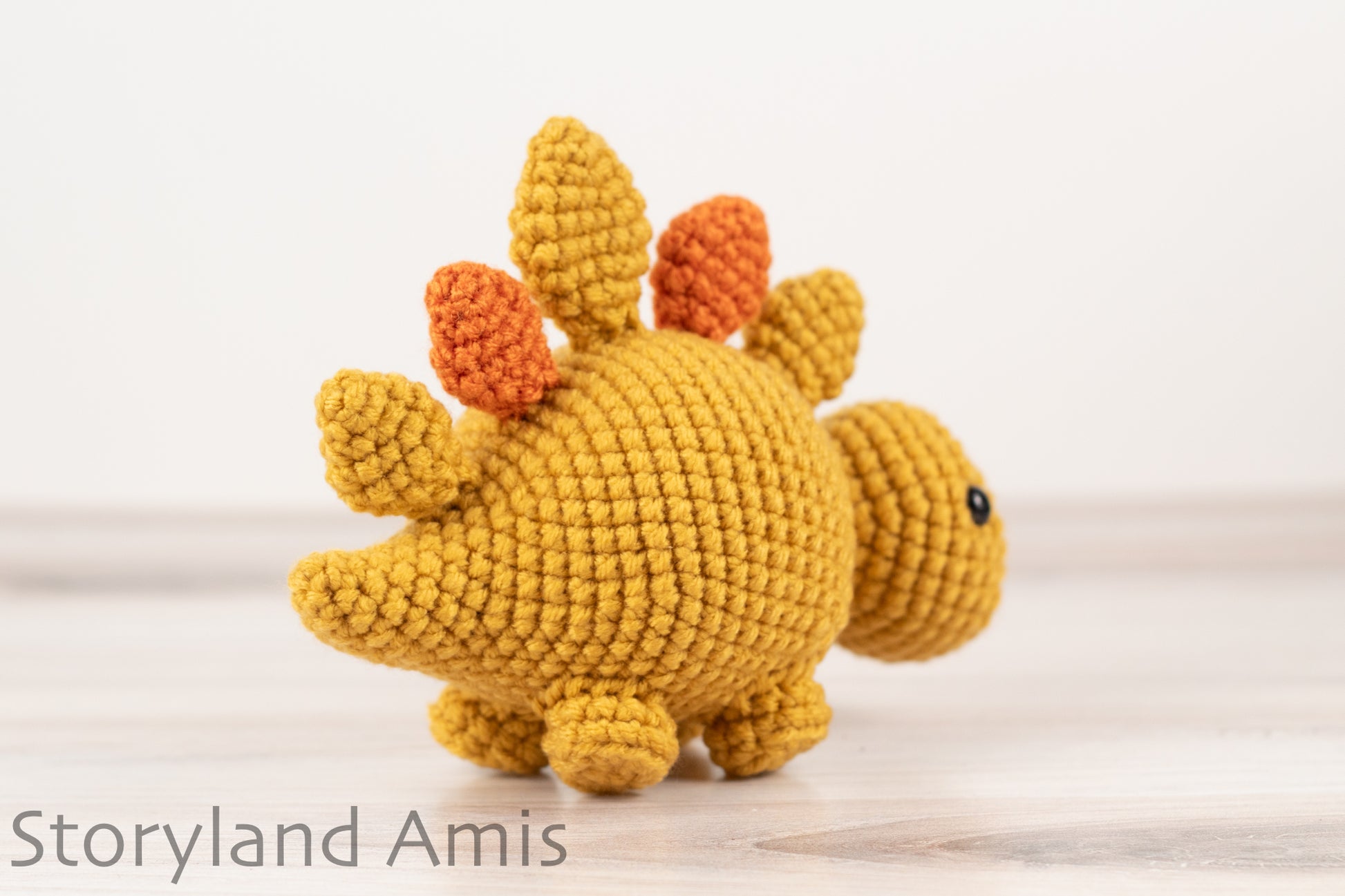 Finished stegosaurus measures about 7 in long & 5 in tall (18 cm long & 13 cm tall). (Please be aware that depending on your gauge and the type of hook and yarn you decide to use, your dinosaur may not be exactly the same size as the one in the pattern.)