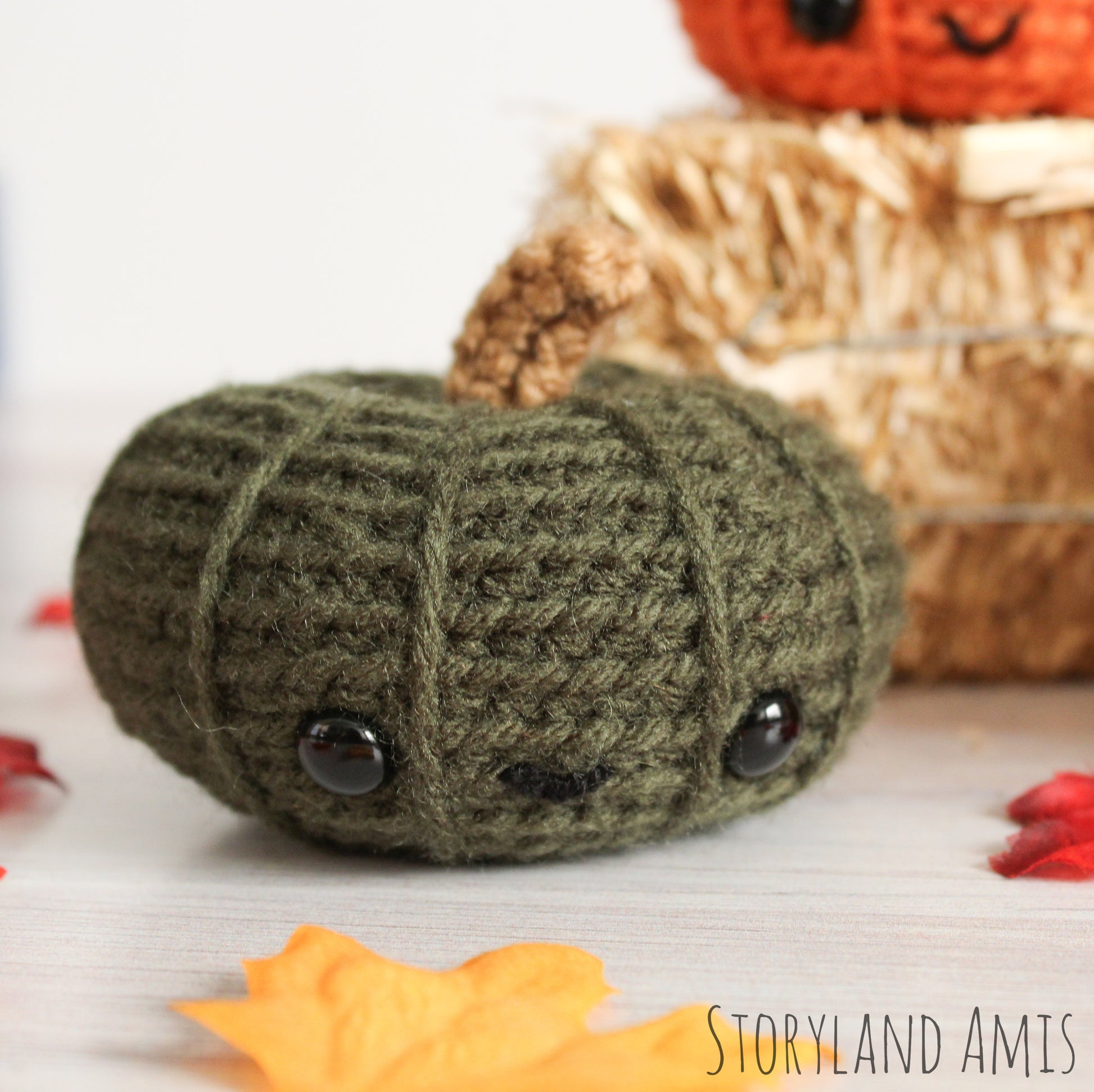 Finished pumpkins measures around 2.5 (6.5 cm) - 3.5 in. (9 cm) tall (depending on pumpkin made). (Please be aware that depending on your gauge and the type of hook and yarn you decide to use, your pumpkin may not be exactly the same size as the one in the pattern.)