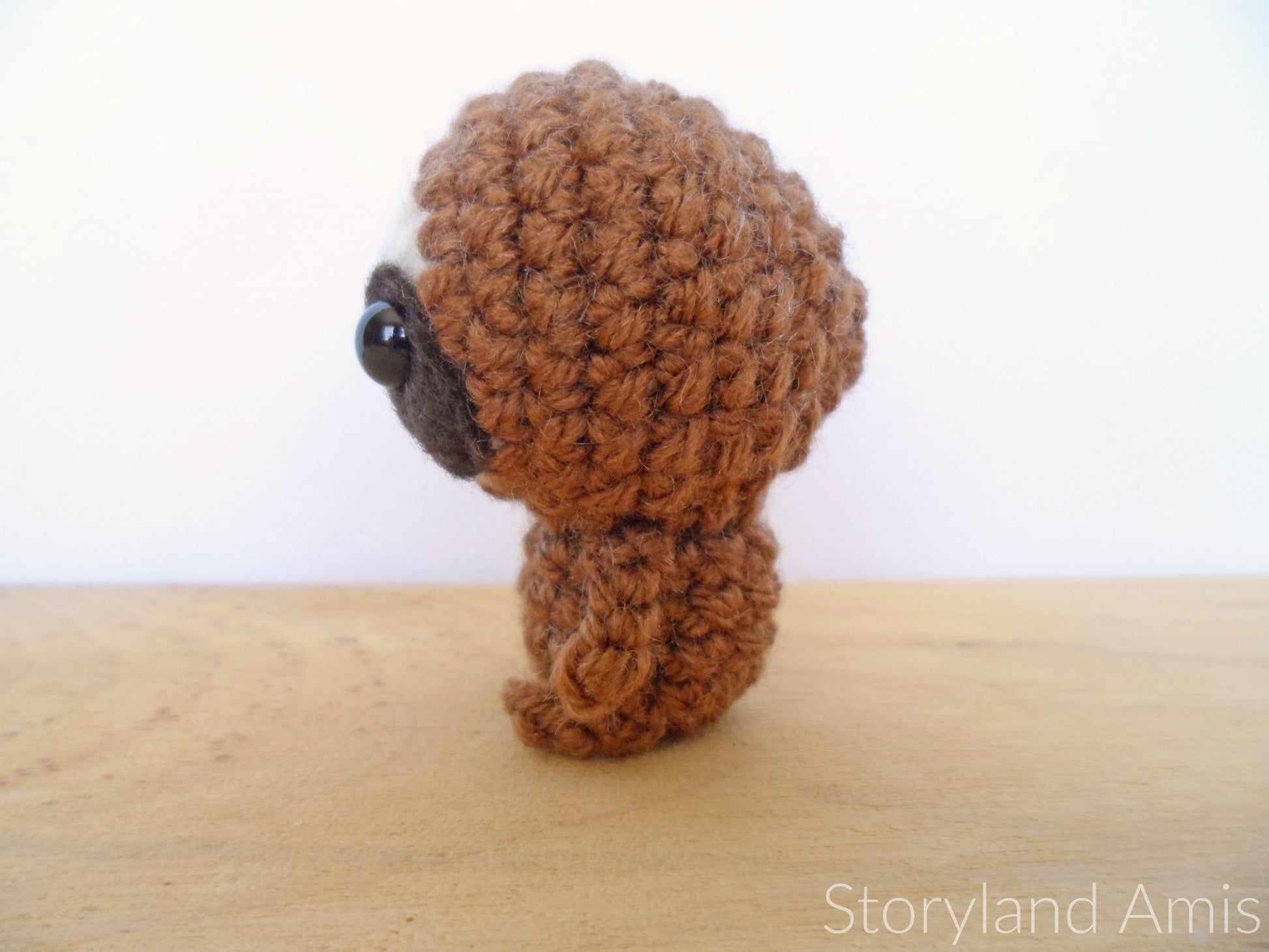 The finished sloth measures about 2.5 in. (6.5 cm.) tall. (Please be aware that depending on your gauge and the type of yarn and hook you decide to use, your sloth may not be exactly the same size as the one in the pattern.)
